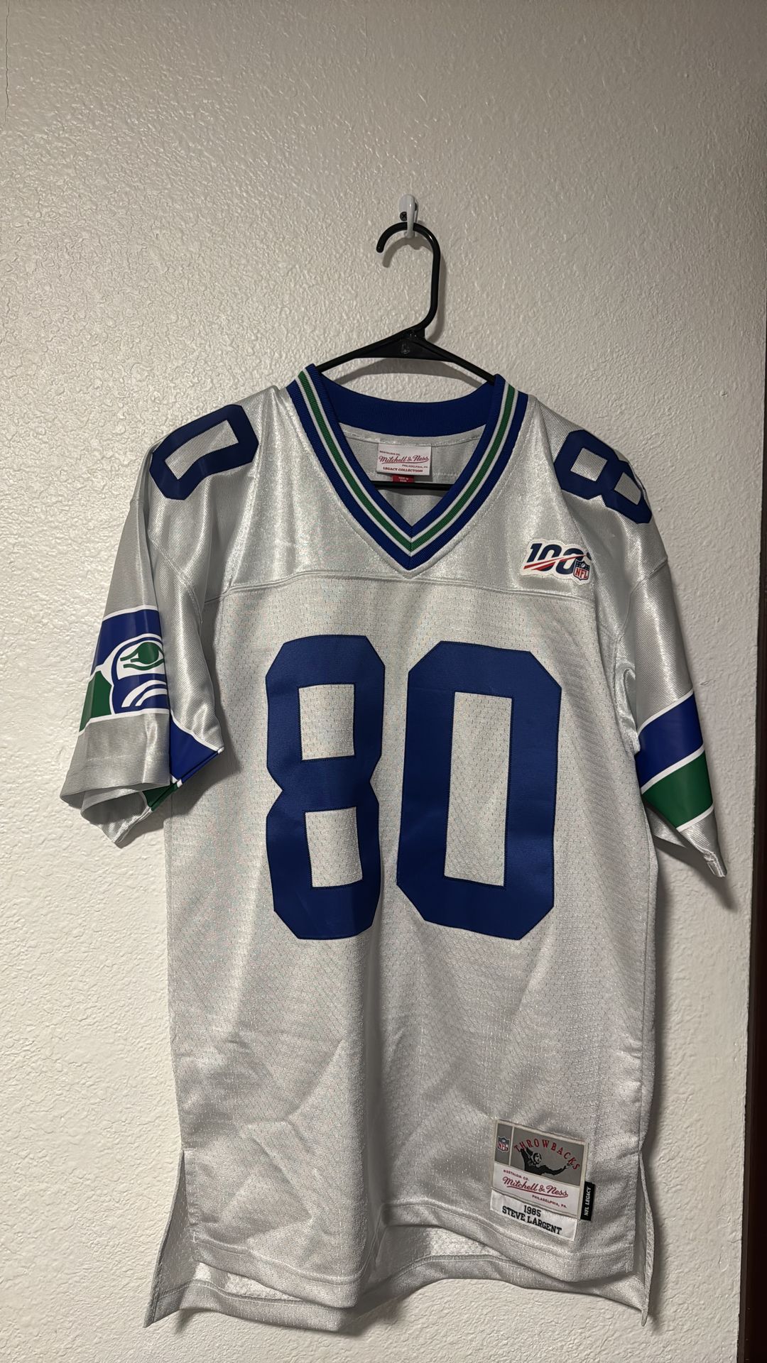 Authentic mitchell and ness jersey with nfl 100 patch Seahawks Steve Largent #80 Size 40 (Mens Medium)