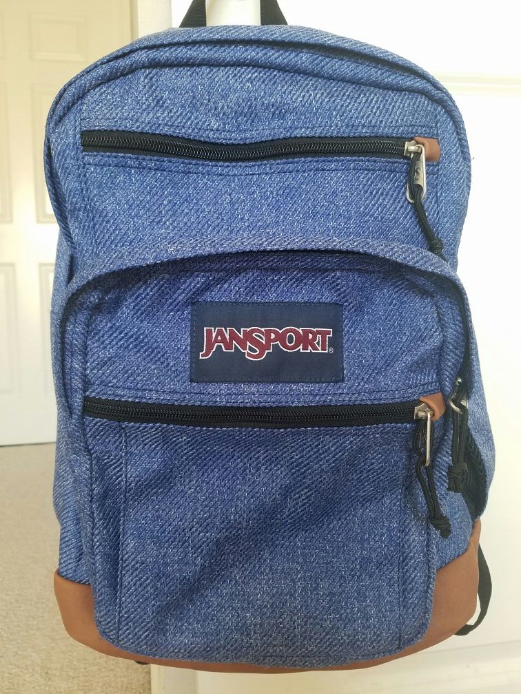 Very good condition Style : JS0A2SDD Capacity : 2100 cubic inches / 34 L Dimensions : 17.5x13x10 inch / 43x33x25 cm Fabric : polyester / synthetic leather bottom and trims Extra large capacity Water bottle pocket Ergonomic S-curve shoulder straps Internal 15" laptop sleeve Two large main compartments