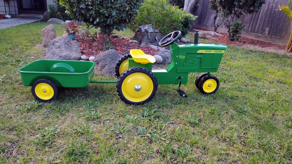 I have a ertl built John Deere pedal tractor and matching trailer, all metal and in perfect condition everything works perfectly. Perfect piece of history for you or your kids.