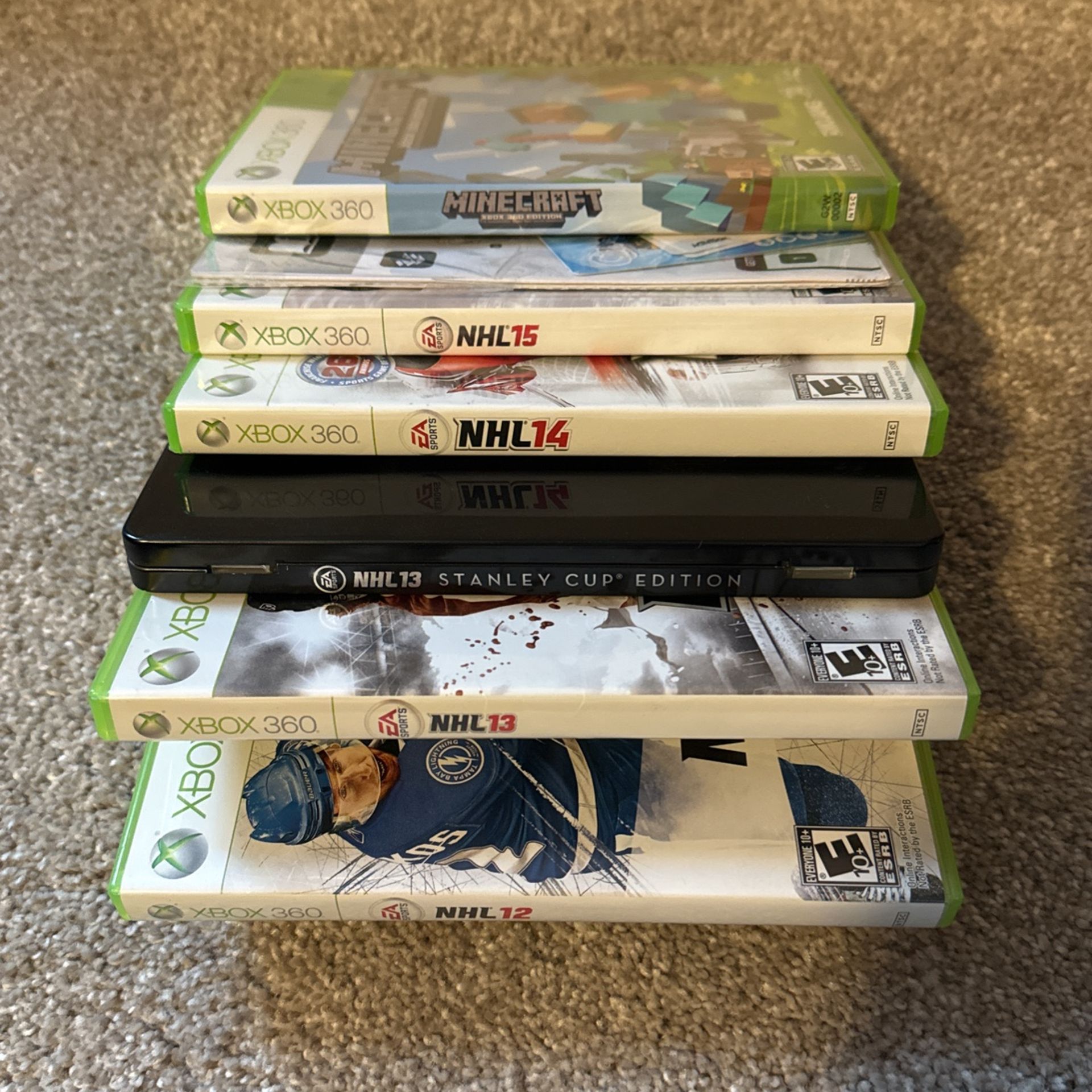 Minecraft, NHL 12, 13, 13 Stanley Cup Edition, 14, and 15. Looking for $10 each or $40 for all 6 games.
