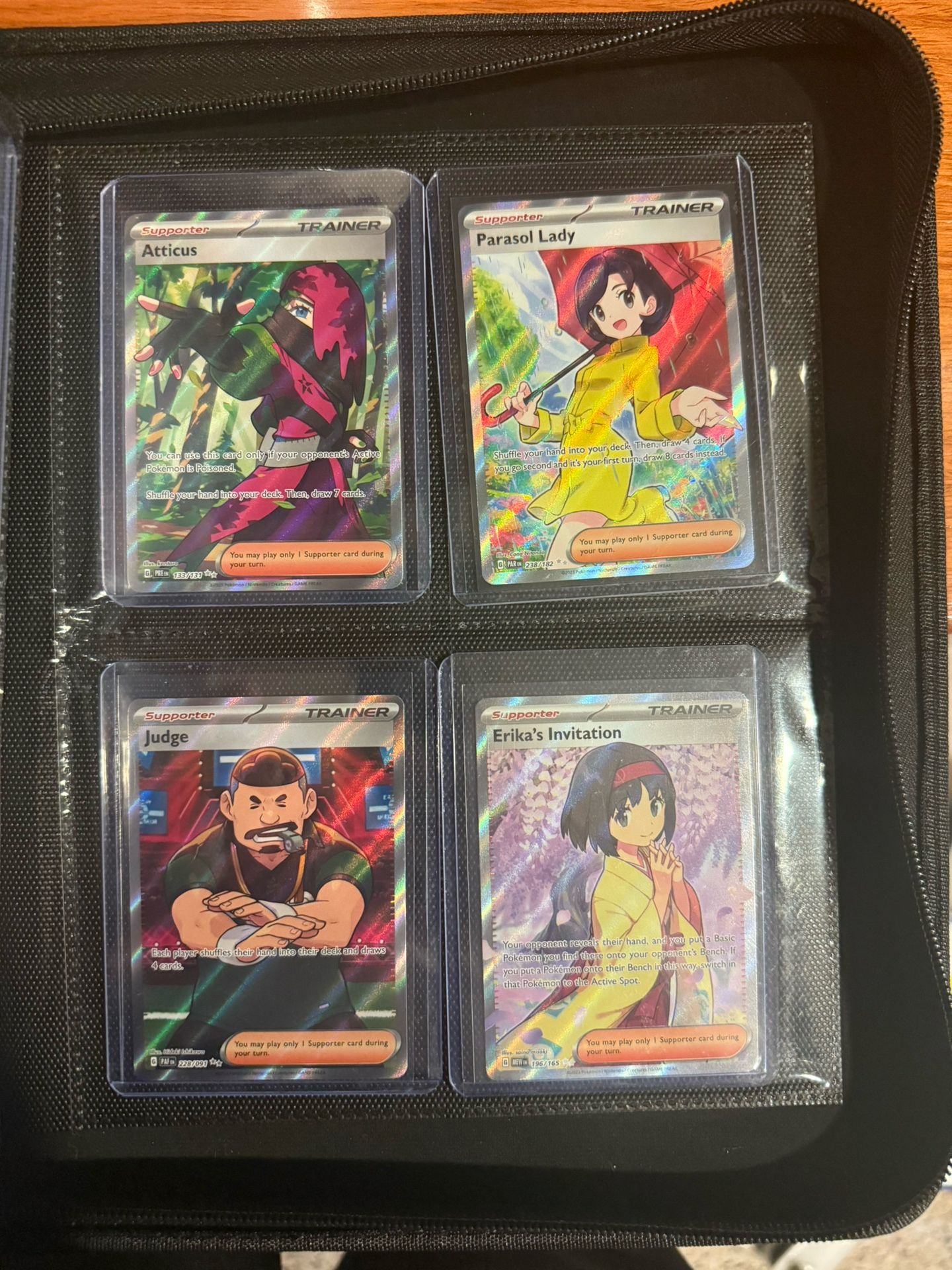 Full Art Trainer Holo Pokemon Cards: Atticus #133, Parasol Lady #238, Judge #228, Erika's Invitation #196