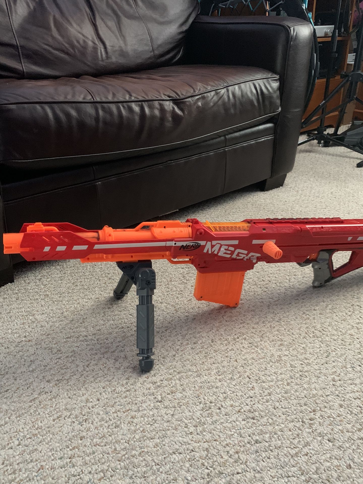 Comes with blaster, clip with bullets, and bipod stand.