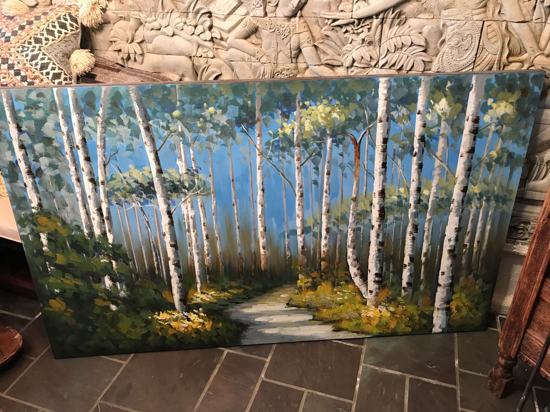 Peaceful bright deep blues and yellows mix with green and white - a print that makes a room. Originally $150, selling for $50 or best offer. All Proceeds go to charity! Please check out my other great items for sale. Thanks for looking!