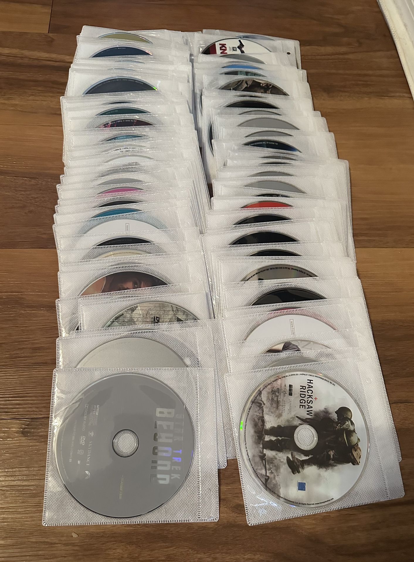 Over 100 DVDs all in excellent condition. Just no original packaging. $3/each Update for availability List: 1917 A Walk Among the Tombstones Argo Atomic Blonde Bad Boys for Life Batman v Superman Dawn of Justice Batman vs Robin Batman: Bad Blood Batman: Gotham by Gaslight Batman: Hush Batman: Ninja Batman: The Killing Joke Bill & Ted Face the Music Blade Runner (The Final Cut) Blade Runner 2049 Bridesmaids Captain America: The First Avenger Casablanca Casino Royale Chicago Creed Creed II Darkest Hour Deadpool Den of Thieves Django Unchained Draft Day Eddie the Eagle Edge of Darkness Father of the Bride / Father of the Bride Part 2 First Man Get Out Green Lantern: Emerald Knights Greenbook Grudge Match Hacksaw Ridge Hercules Hidden Figures Horrible Bosses 2 Hot Fuzz I, Tonya In Time Inception Ip Man 4 Iron Man 3 John Wick John Wick 3 Parabellum John Wick Chapter 2 Joker Jumper Justice League: Gods and Monsters Justice League: Throne of Atlantis Justice League: Throne of Atlantis Knight and Day La La Land Last Vegas Lincoln Magic Mike Man of Steel Mission: Impossible Fallout Mission: Impossible Ghost Protocol Misson: Impossible Rogue Nation Molly's Game Nightcrawler Ninja: Revenge Will Rise / Ninja II: Shadow of a Tear Now You See Me (Extended Edition) Ocean's 8 Out of Time Paddington Paddington 2 Pan Planes, Trains & Automobiles Reign of the Supermen Robin Hood 2010 Robin Hood 2018 Rush Scrooged Sherlock Holmes Sherlock Holmes Game of Shadows Sicario Son of Batman Superman: Red Son Tag Taken 2 Ted The Accountant The Adjustment Bureau The Avengers The Book of Eli The Death of Superman The Family The Founder The Gameplan The Gentlemen The Greatest Showman The Hunger Games Catching Fire The Incredible Burt Wonderstone The Intern The Man from U.N.C.L.E The Monuments Men The Post The Right Stuff The Thomas Crown Affair The Three Stooges The Movie The Town (Extended Cut) The Wolf of Wall Street The Wolverine Trouble with the Curve Vice Waterworld Who Framed Roger Rabbit
