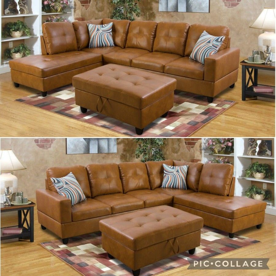 Brand New Leather Sectional With Storage Ottoman