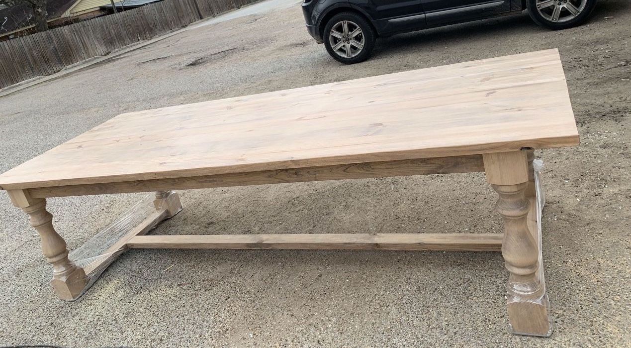 We are a small family owned business handcrafting Custom Built Farm House Tables & Benches and much more! All Handcrafted to your desired dimensions. MADE TO ORDER- all Hand Built! DUE TO THE CUSTOMIZATION, OUR PRICES VARY ON: STYLE DIMENSIONS STAINED OR PAINTED * If interested in a quote, please let us know what picture number and approximate dimensions you’d be interested in. That will help us provide you with an accurate quote. Our tables are very nicely built. They are All Solid Wood. Surfaces Sanded for smooth finish. We also filled in the table top lines so no food or dust particles get in between the board lines. Easy to clean, triple layered with sealer for Heat and water protection. Table comes in two parts; table top and base for easier transport. Screws are provided as well. Built to Last! UPHOLSTERED CHAIRS NOT INCLUDED,( they are for staging purposes only)we do offer wood chairs that are matched to your custom table. Price vary on style. Styles are not limited; you can mix Table top Design with other leg styles. All pieces sold separately, you choose your table design and bench design. Table only, table & Bench etc. •Breakfast / Dining Tables Starting at $400 and Up. Any dimensions. REAL Solid Wood Dm me for pricing Pick up Condition: New ***Follow us on INSTAGRAM: @ Cr.woodworks ***