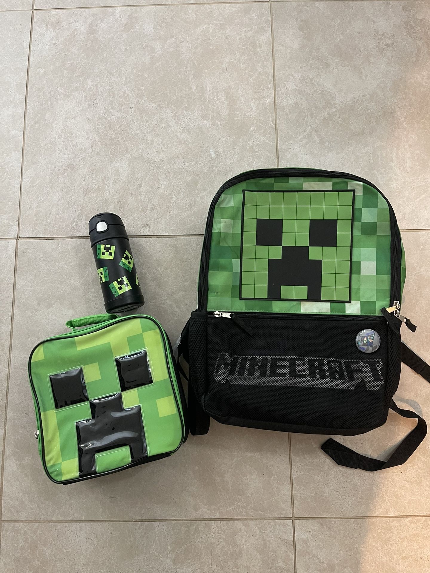 Kids Minecraft Backpack + Lunchbag + Water Bottle