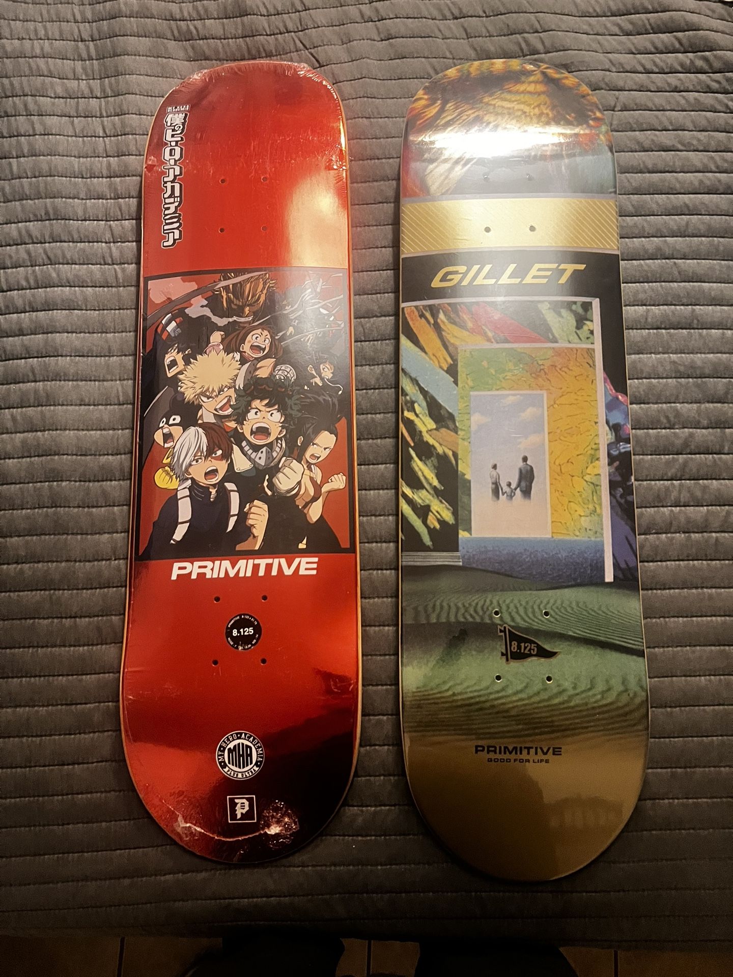 Primitive skate decks Size: 8.125 Bakersfield meet up pick up only. $50 the Gillet one. Sold $65 the My Hero Academia one.