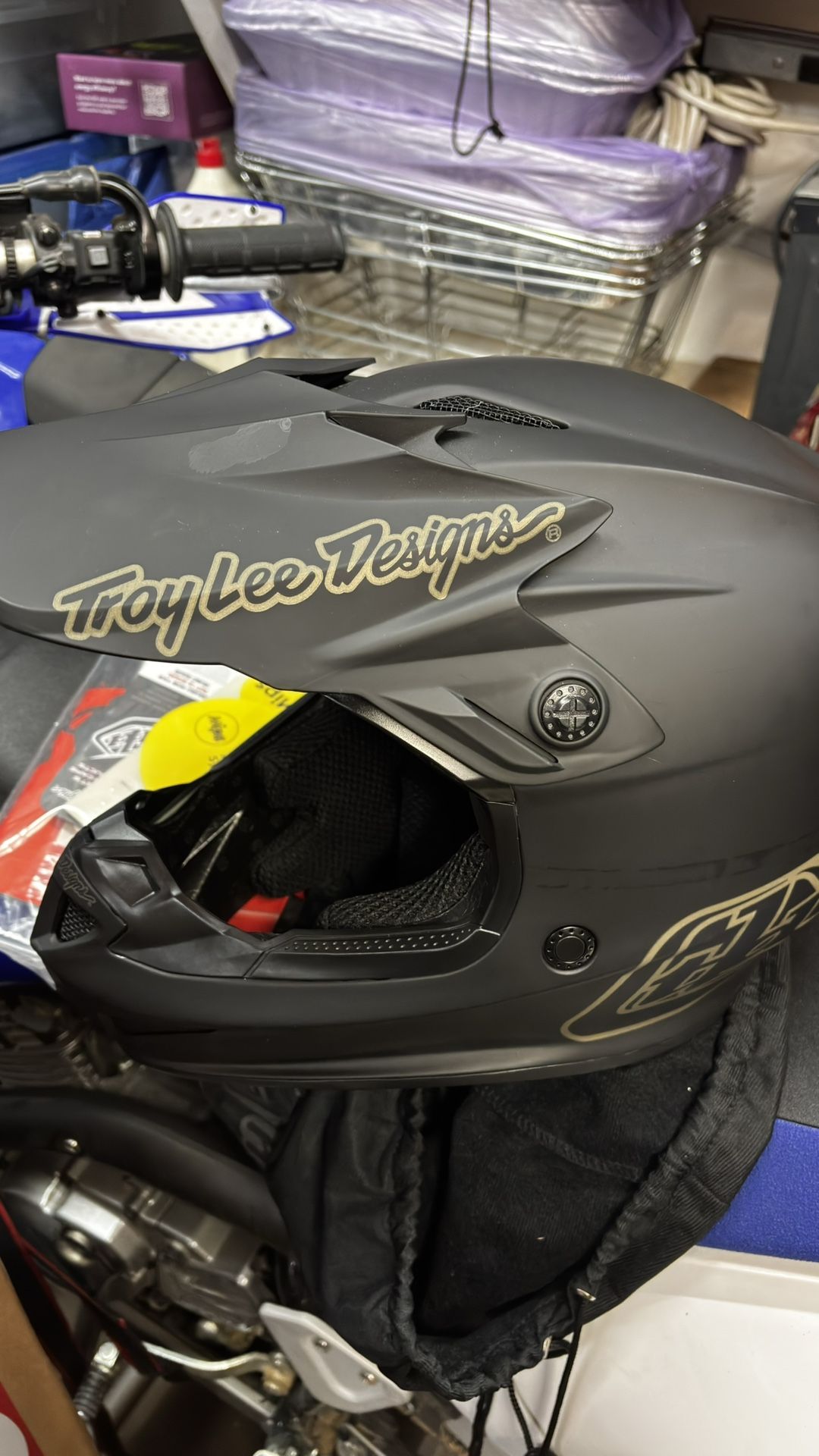 Up for grabs is a 1 time used a Troy Lee Designs SE4 Polyacrylite Helmet Mono. Size is adult XS My youngest child used it for one ride and decided he didn’t like dirt bikes nor quads. I was disappointed but o’well. It was t dropped nor mistreated that one use. It has been in the garage ever since and inside its bag. This was purchased new at Troy Lee Designs at their Laguna beach shop.