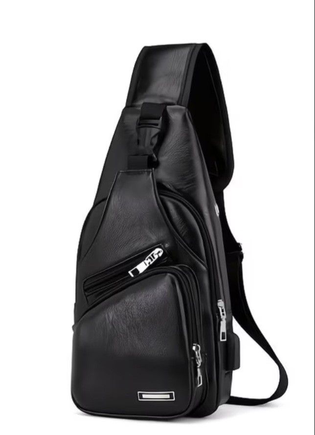 SE HABLA ESPAÑOL. Elevate your daily essentials with this Chic Unisex black shoulder bag. Designed for Modern Convenience, it features a built-in USB charging port, so you can easily power your devices on the go. A dedicated hole for headphones or charger cables keeps your cords organized and accessible, perfect for commuting, travel, or everyday use. The sleek, durable faux leather exterior combines fashion with functionality, making it a versatile accessory that complements any outfit while keeping your tech ready at your fingertips. MEASURES 12 inches height by 6.5 length by 2.25 width. BRAND NEW still in the plastic. Local MeetUp for Delivery.