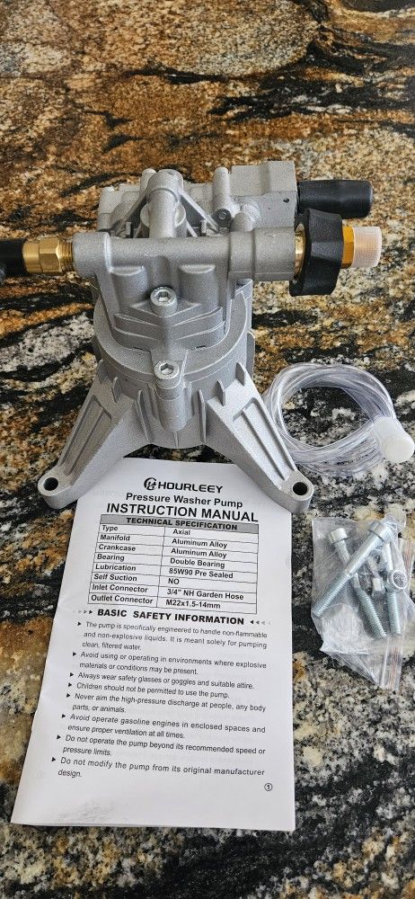 New in box. Hourleey 7/8" Shaft Pressure Washer Pump 3400 PSI 2.5 GPM