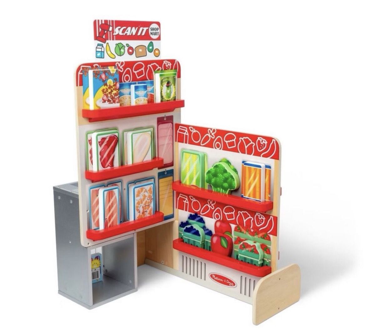 Melissa & Doug Woodent Scan It! Shop Mart Play Set With Electronic Scanner And Wooden Melissa & Doug Wooden Scan It! Shop Mart Play Set With Electronic Scanner And Wooden Play Food To Scan: Toy Kitchen with Creative Accessories Like new my kids used it once and was out away. Paid $100 plus tax selling for $65