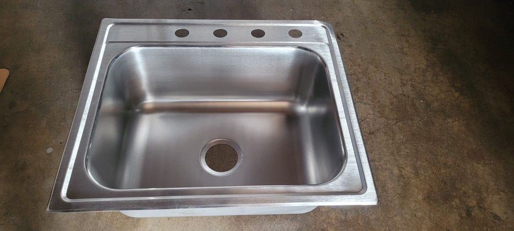 25"L X 22"W x g"D dol mount. single bow kitchen sink 20-gauge stainless steel Four faucet holes ELKAY