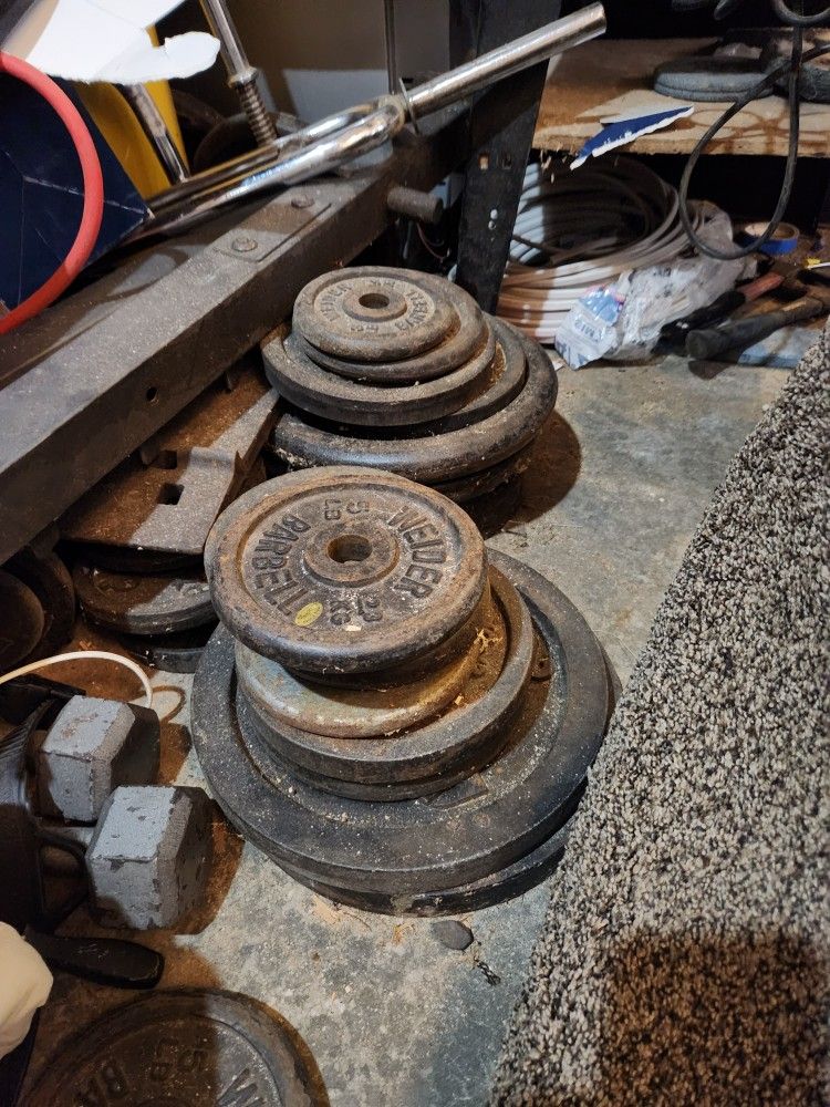 Couple hundred pounds of iron weight and a bench press bar. Tricept bomber and curl bar. Trades welcome