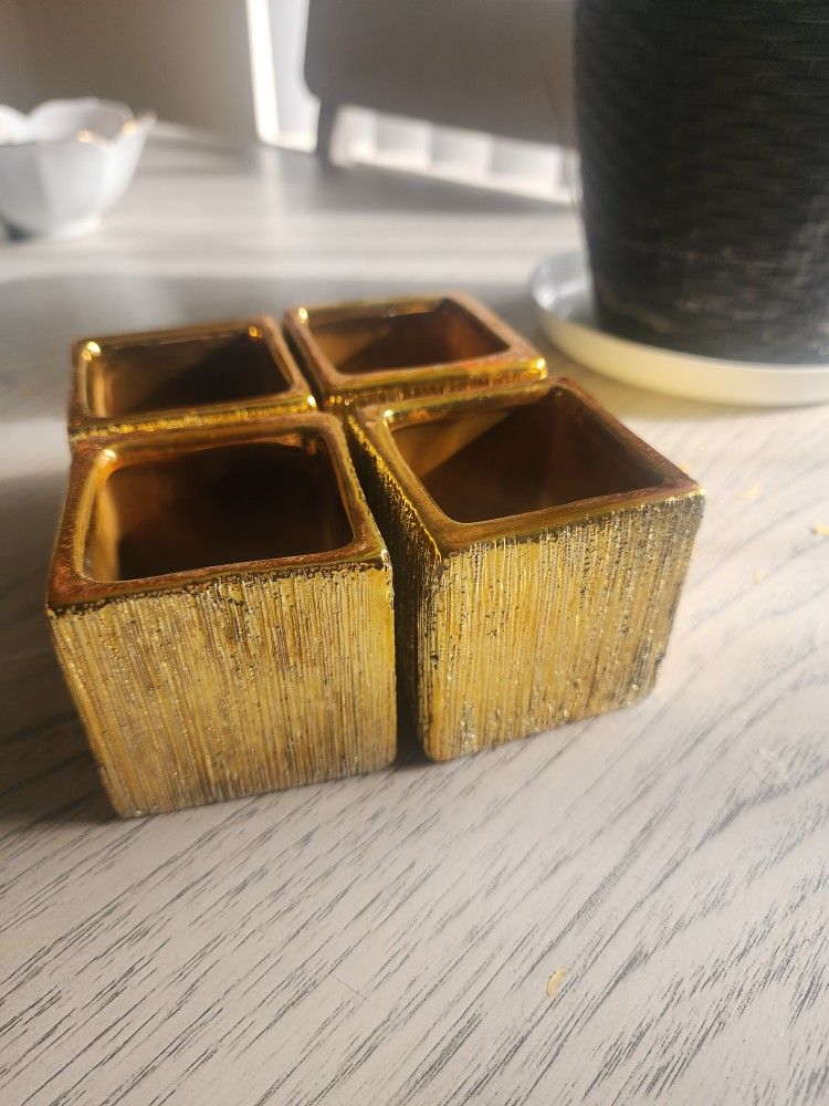 Gold Candle Votiv Cups, Gold small squares 4 total.