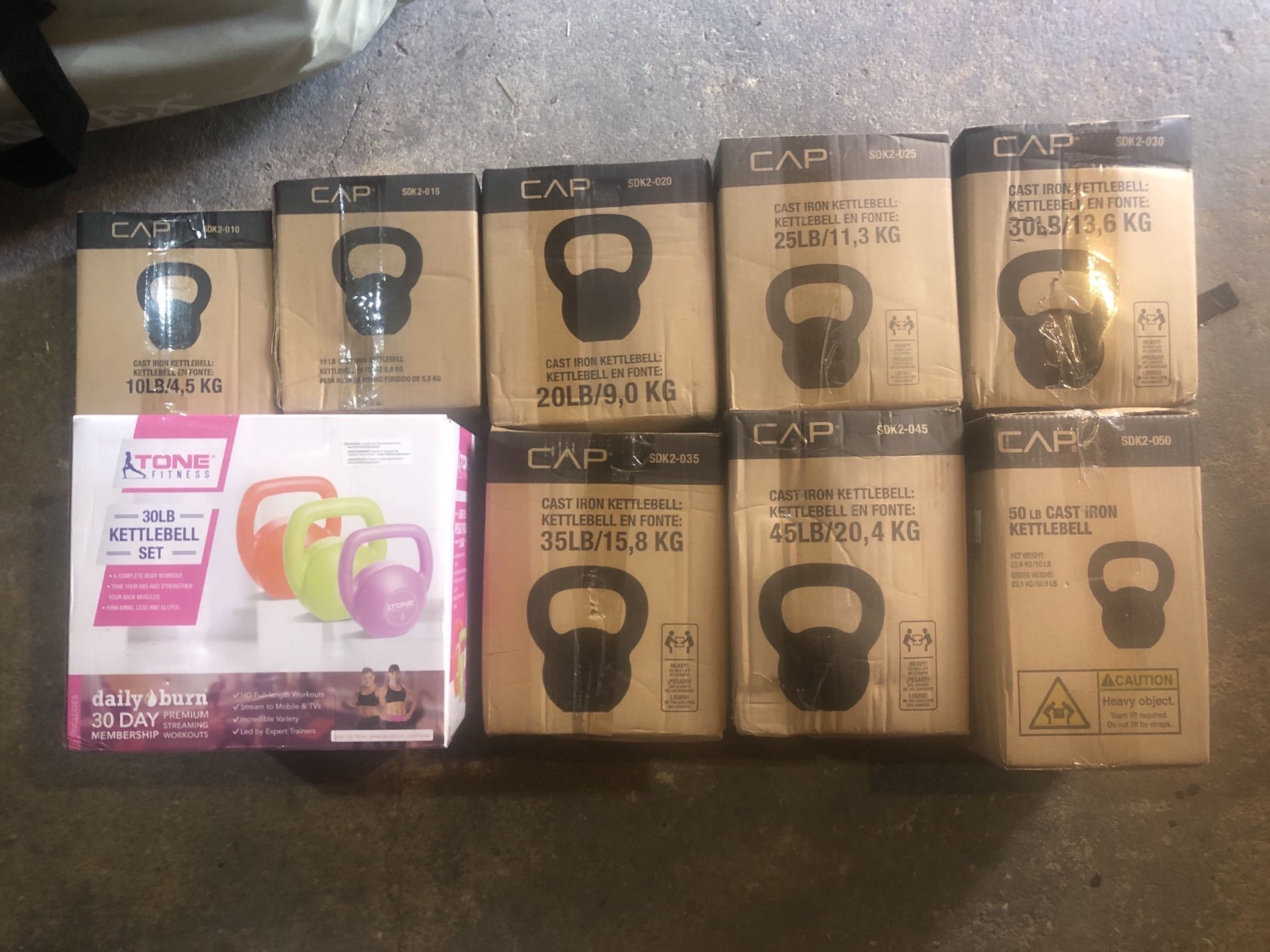 All new in boxes From 10lb to 50lb It’s not all for $100 You can buy one two or all bundle Ask for prices
