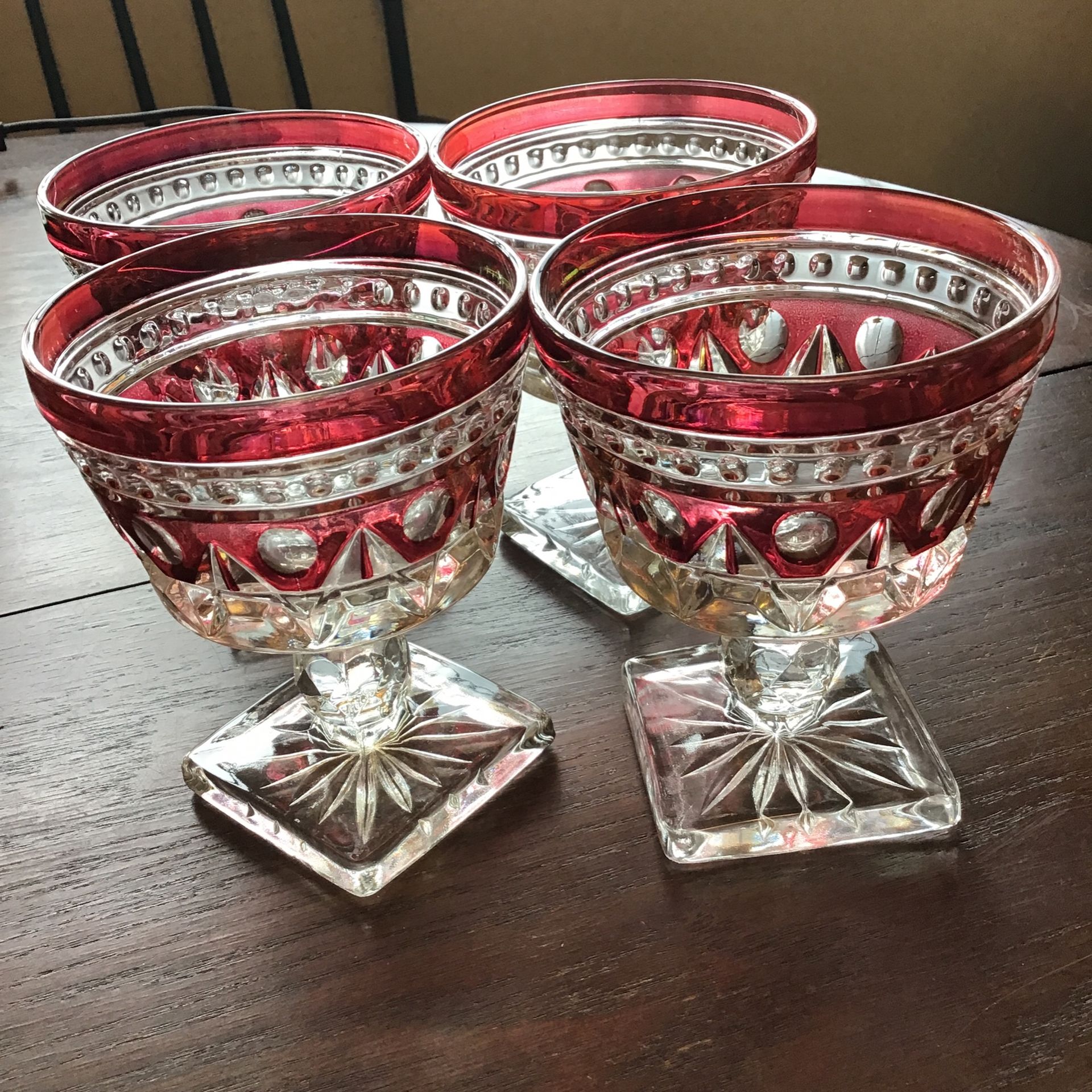 4 Indiana Glass Colony Park Lane Red Flash Wine Goblets. 11 Centimeters Tall. Just Under 4” Tall.