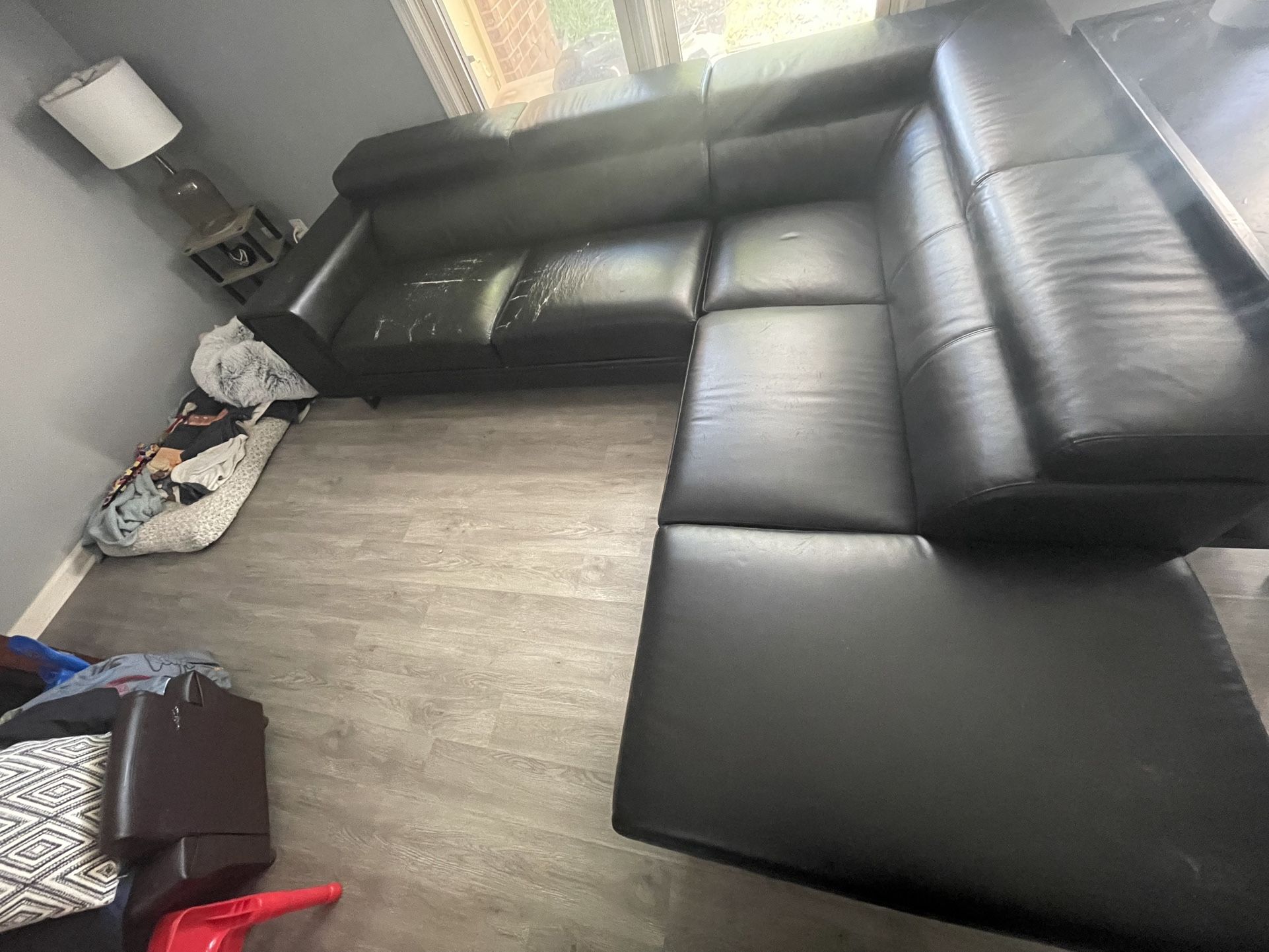 Black leather Normal wear & tear Loved for a couple years Very durable and easy to clean No delivery Serious inquiries only
