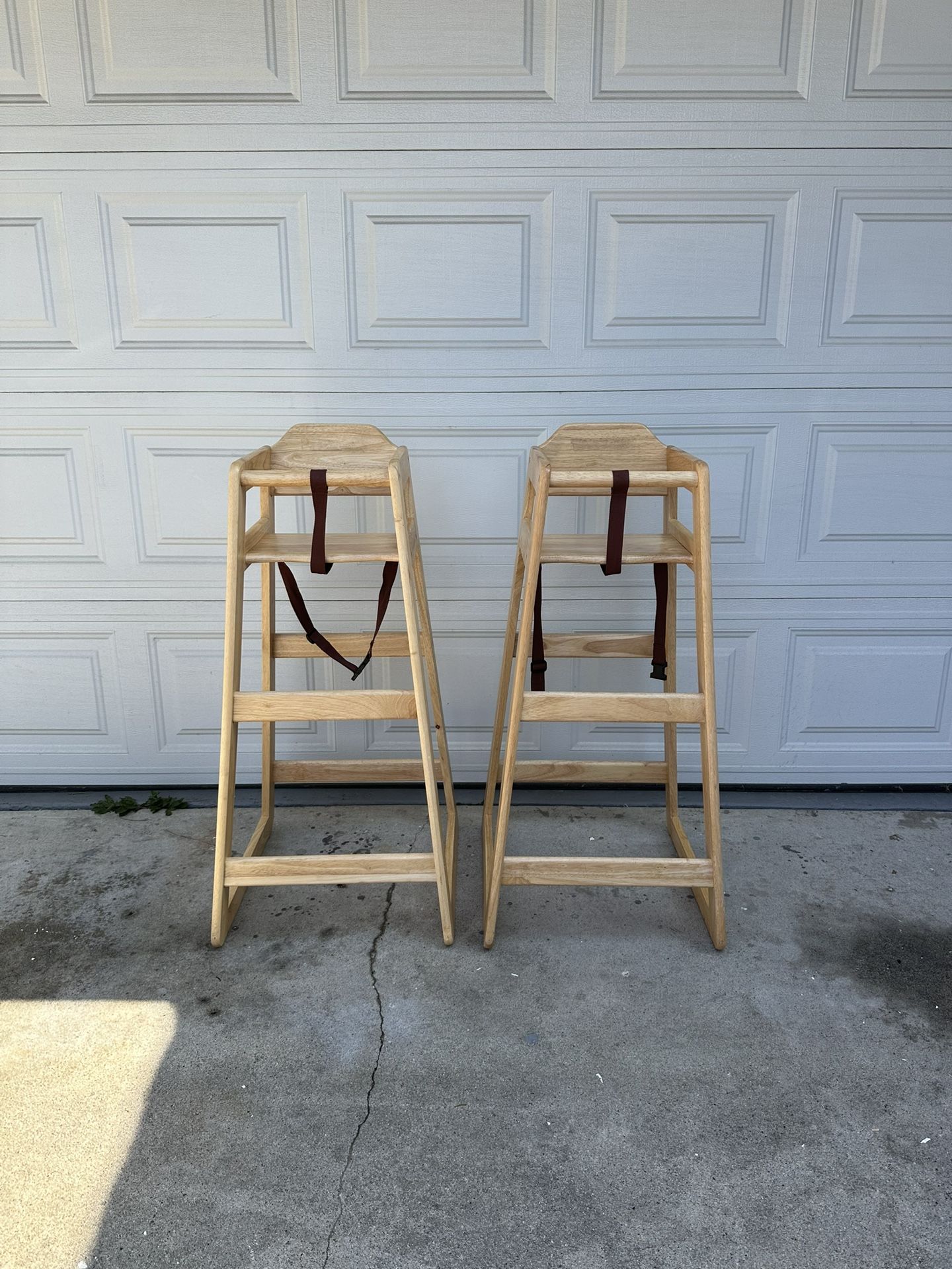 Bar height wooden high chair. Purchased from restaurant depot. Retails $100 +tax and shipping. Selling for $50 each