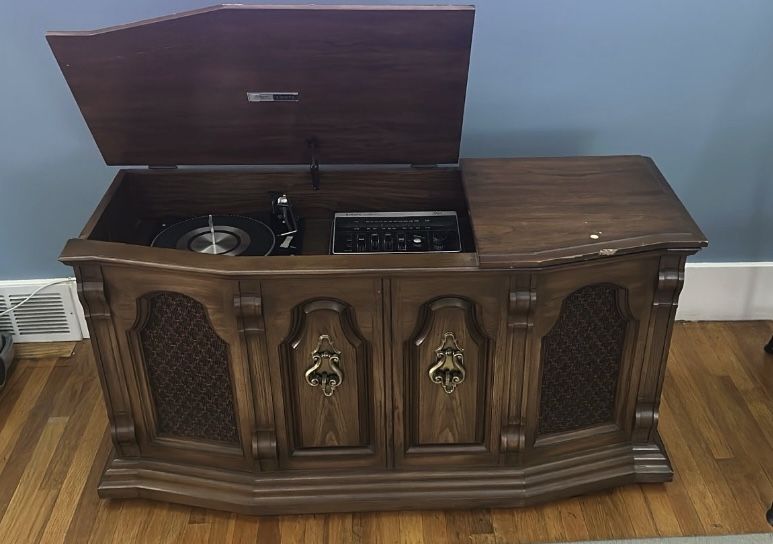 Record player needs work. Maybe cleaning and greasing. As it takes a while to spin up. $200 OBO