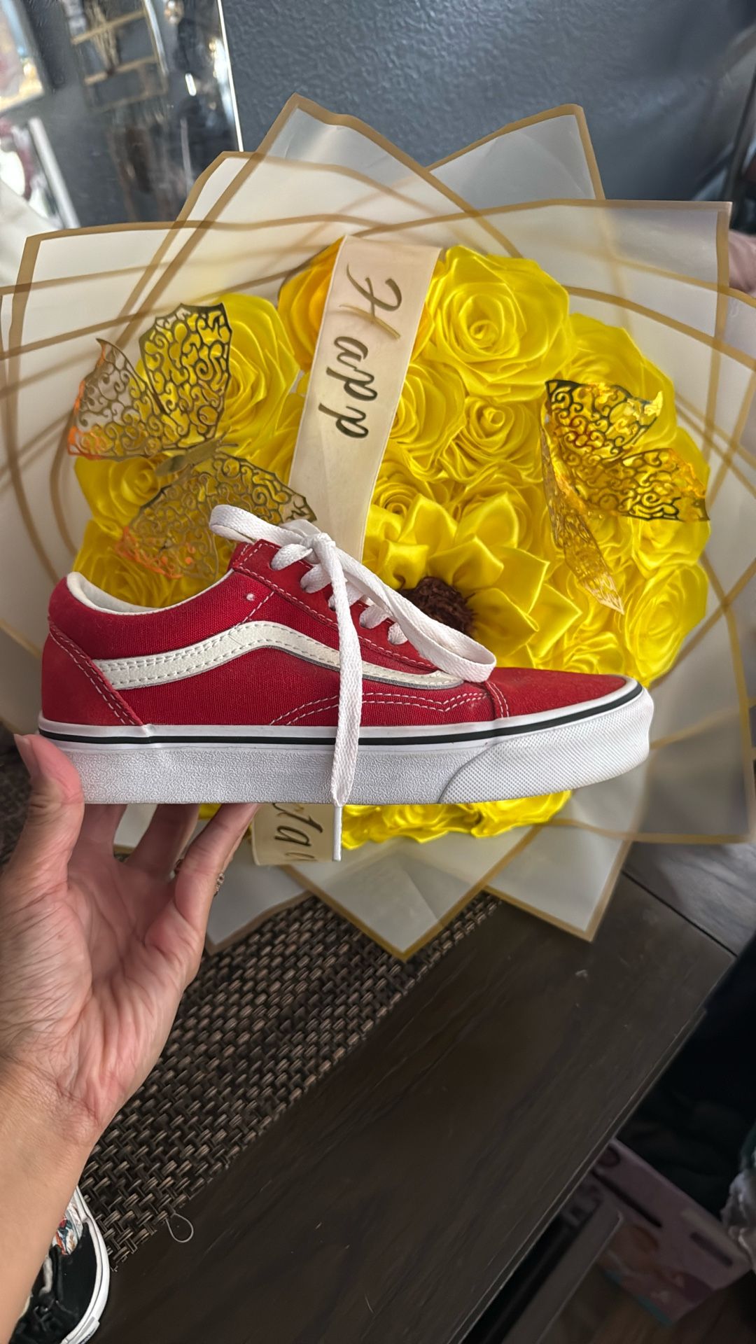 Red n white vans size 4y
