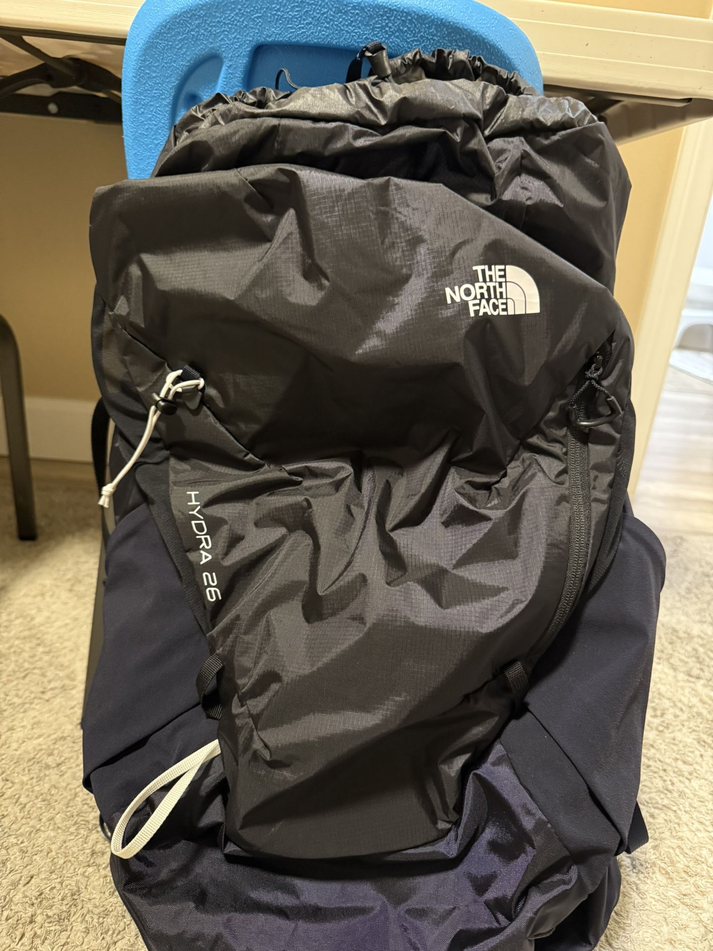 New, never used The North Face Hydra 26L Backpack Black with navy blue accents