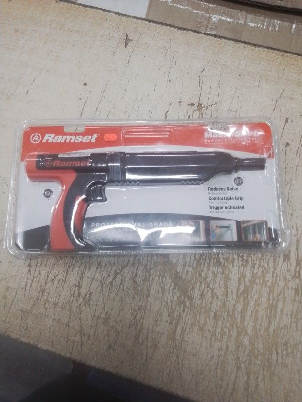 The Ramset MasterShot 0.22 Caliber Powder-Actuated Tool makes attachments to concrete and steel quietly. Its silencing feature and cushioned ,ergonomic grip offer user comfort. Can fasten up to 3in. drive pins with washer. We are located at 3118 W North Ave and are open MF 10-6 and Sat 10-5 Sun: closed. If you have any other questions, please call us or send us a message. Thank you!!