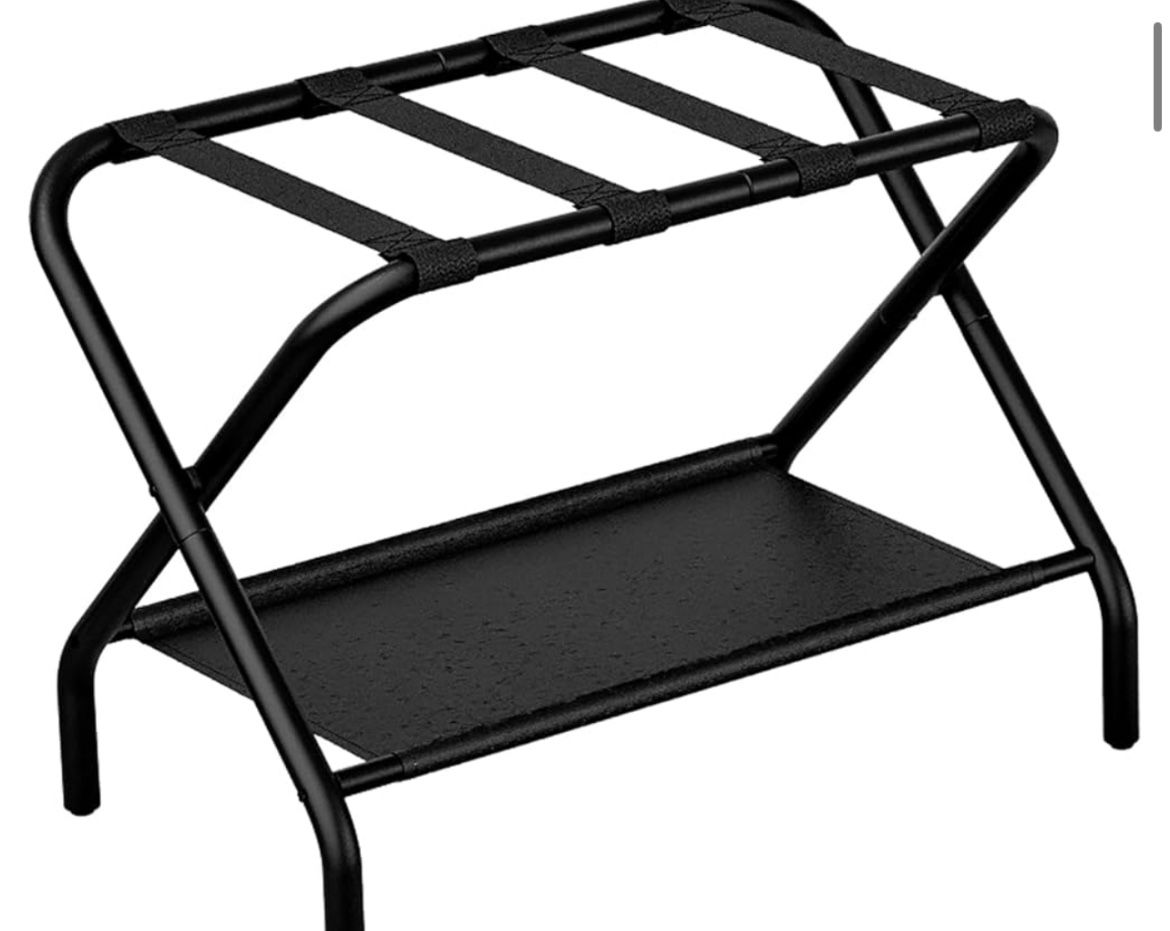SONGMICS Luggage Racks, Set of 1 Suitcase Stand with Fabric Storage Shelf, for Guest Room, Bedroom, Hotel, Foldable Steel Frame, Holds up to 110 lb,