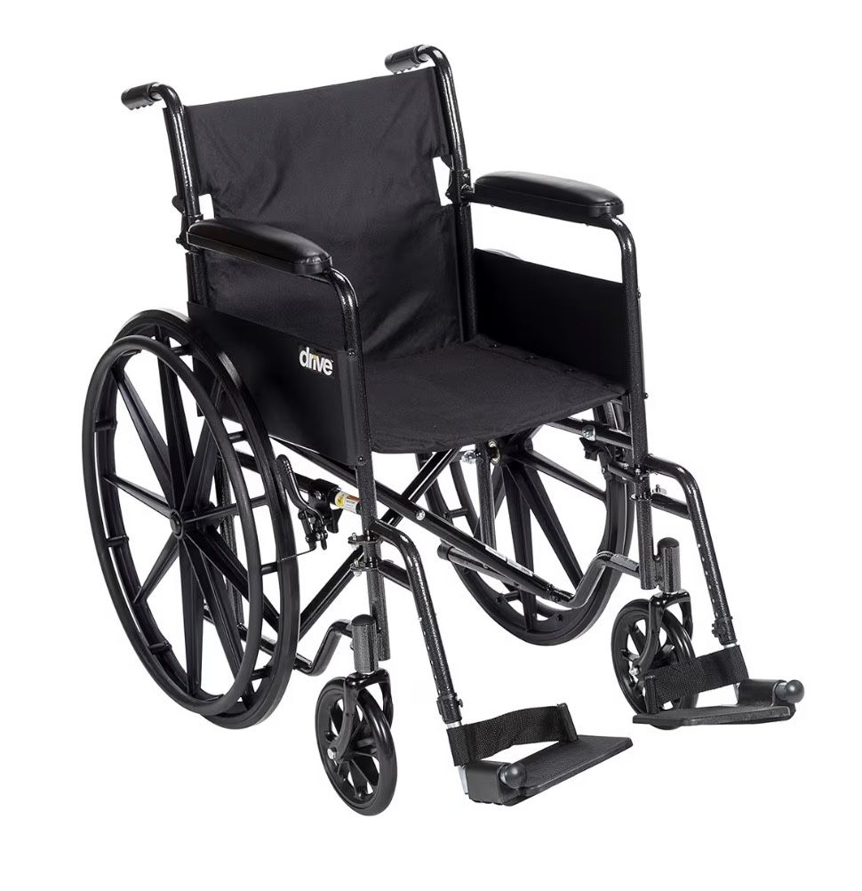 Drive Medical SSP118FA-SF Silver Sport 1 Folding Transport Wheelchair with yFull Arms and Removable Swing-Away Footrest, Black New still in box #28