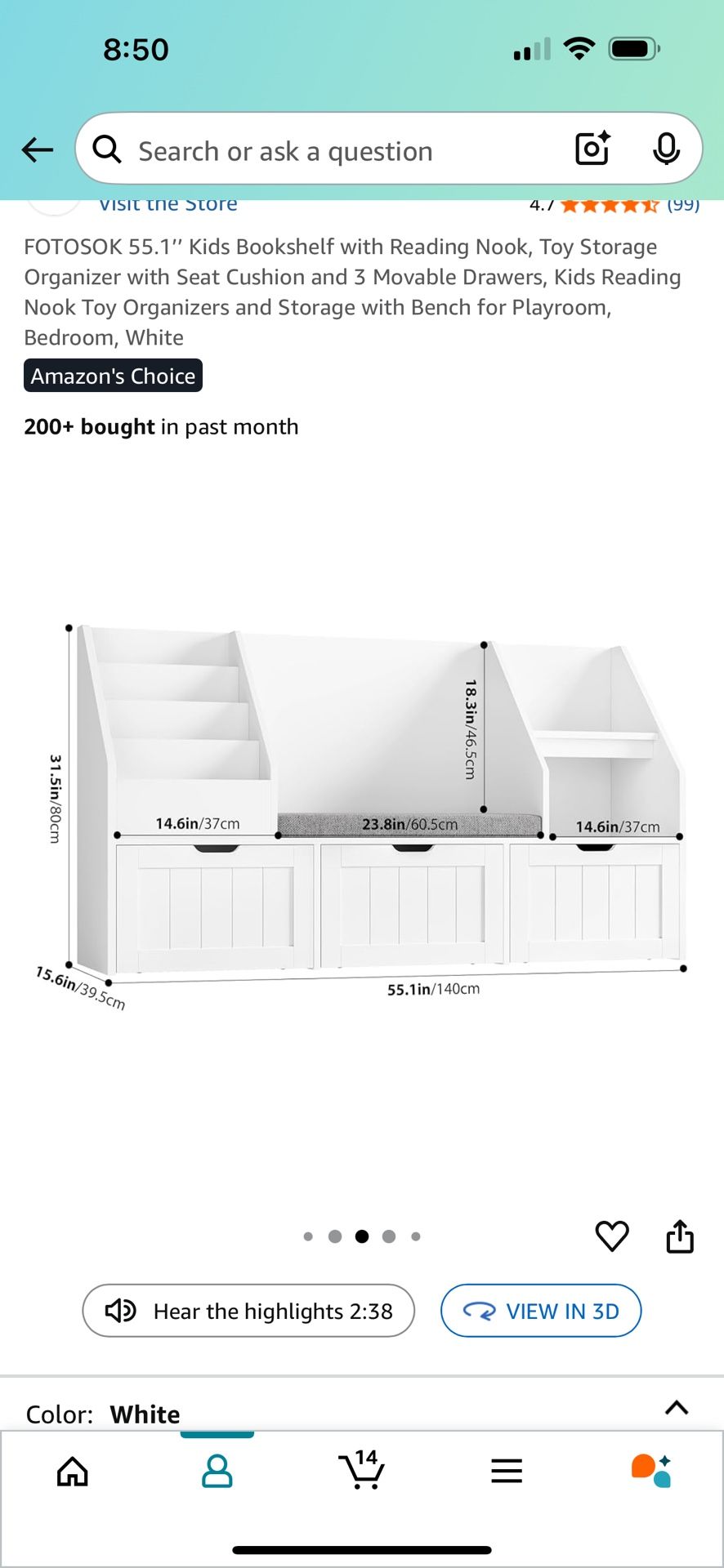 BRAND NEW! Kids Reading Nook Toy Organizers and Storage with Bench for Playroom, Bedroom, White Naples (Pick up ONLY)
