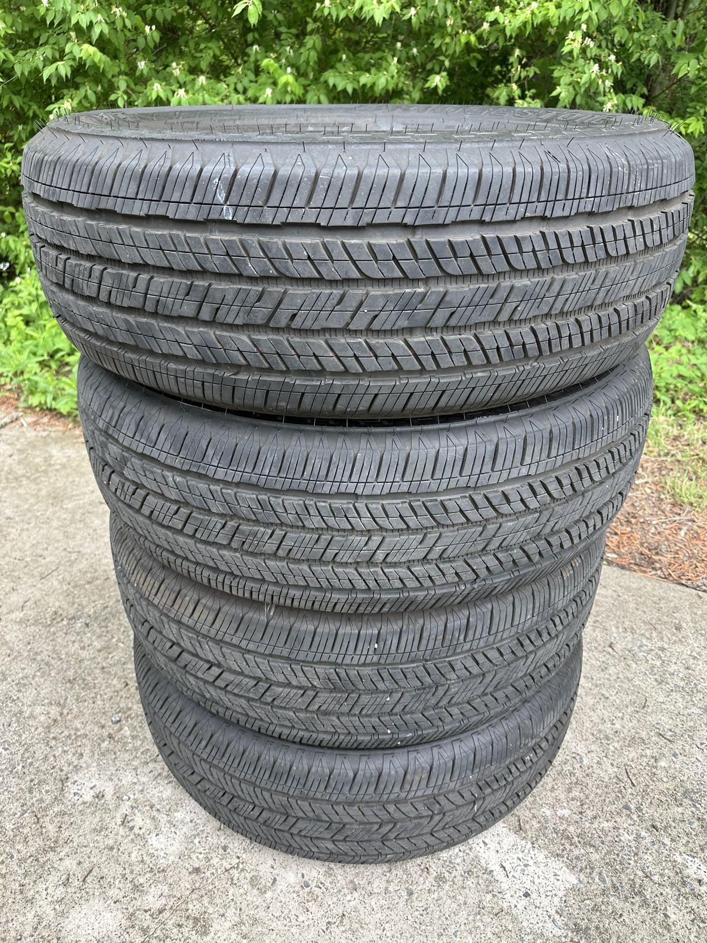 I have 4 Bridgestone Dueler tires in excellent shape. These tires were removed from a 2022 Toyota Tundra. All tires are matching with no plugs or patches. Tires size is 265/60/20’s. These tires have about 90% tread like new condition. Price $580.00 Contact me anytime.