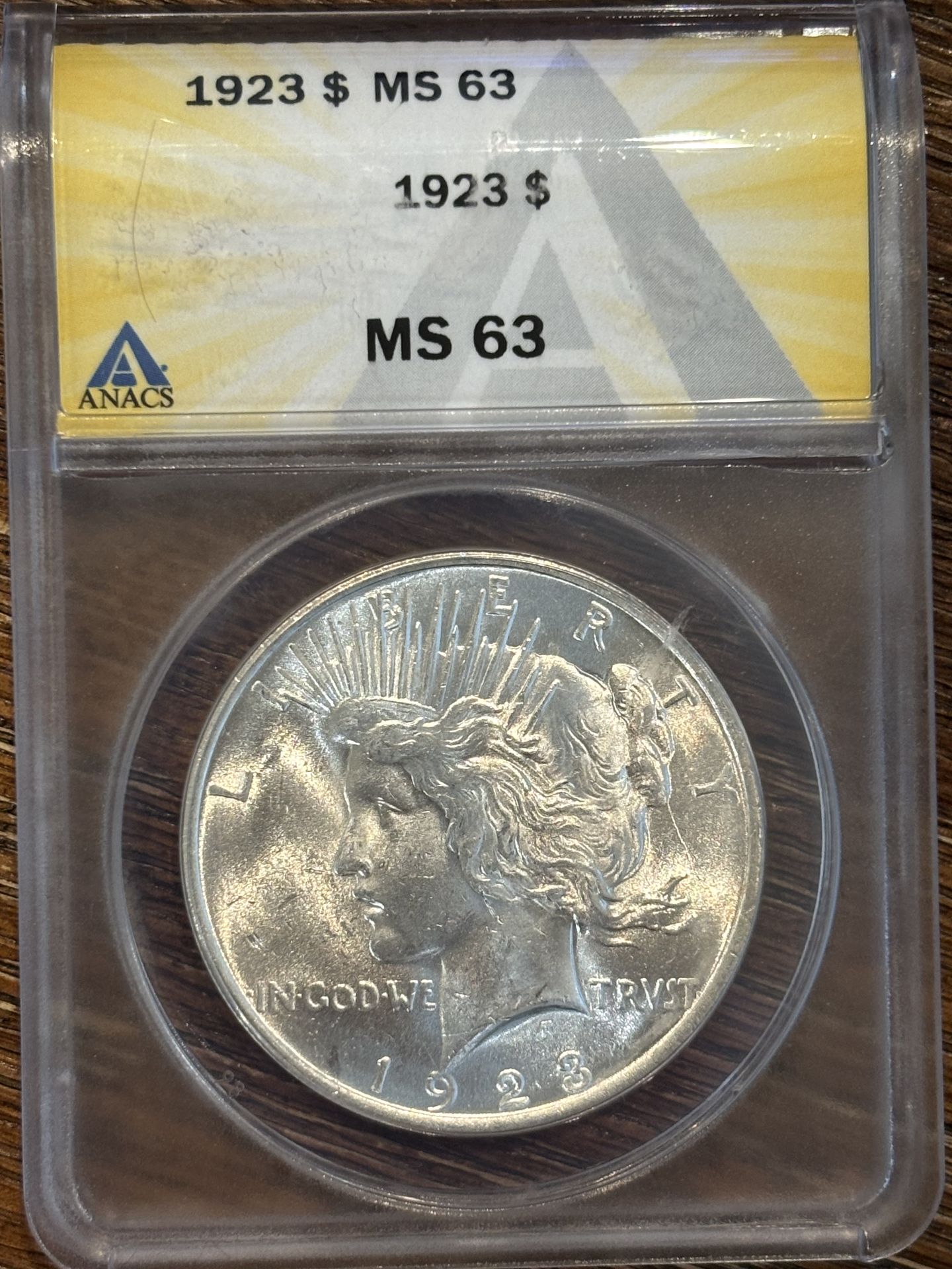 1923 Peace Dollar ANACS MS63 – Slabbed Silver Dollar