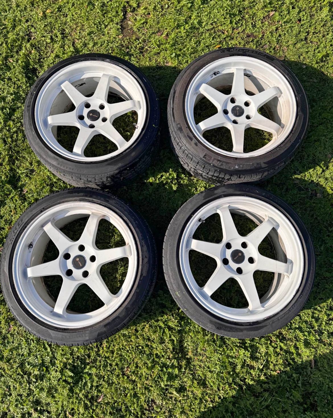 Offer wheel trades!! 5x114.3 18x9.5 +22 1 tire is worn down other 3 have good tread Wheels curbed no cracks nor bends $650 or best offer