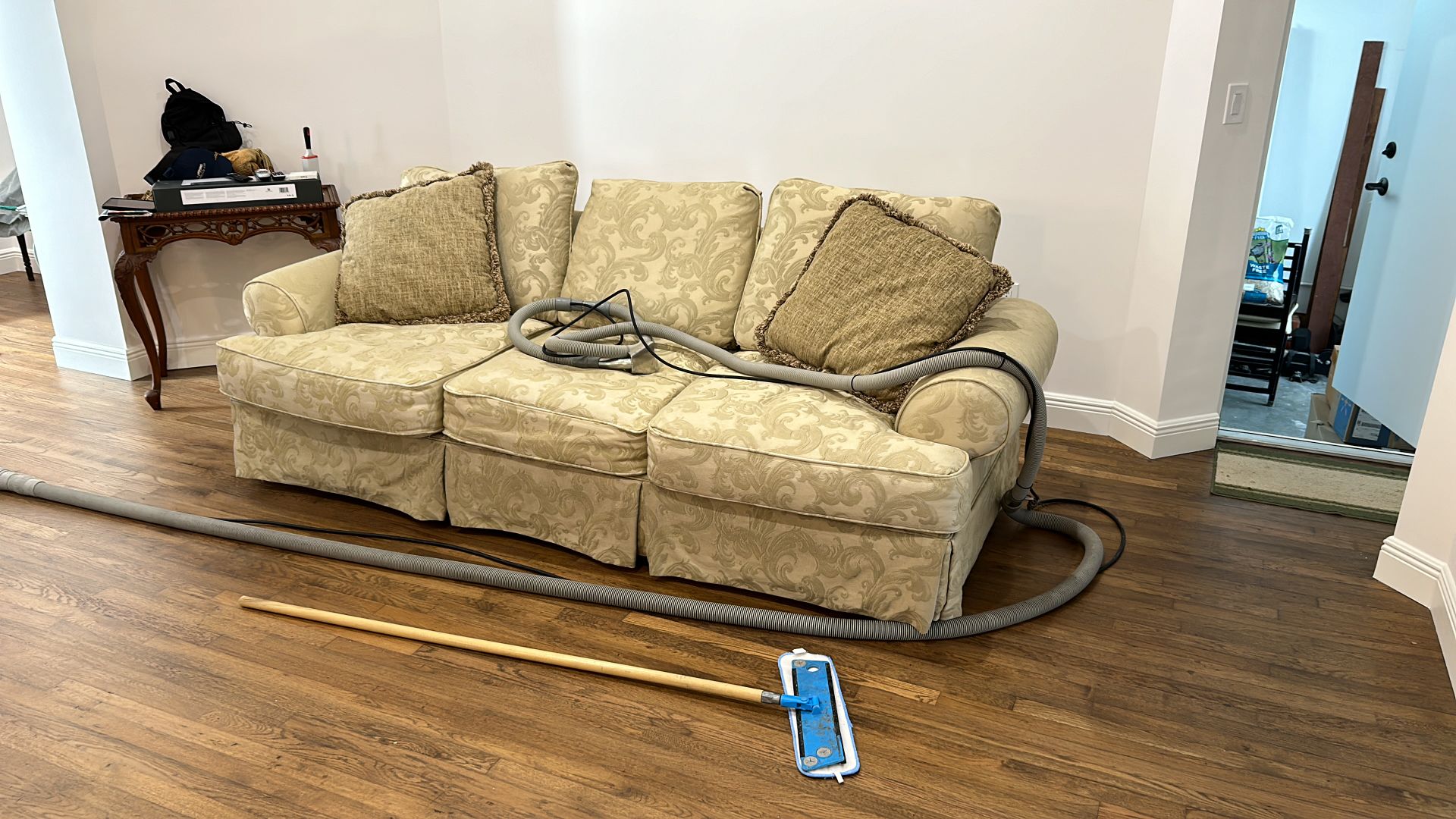This couch is free for anyone interested! I recently had it steam cleaned and wrapped in plastic before it was placed in my garage under AC. It just does not fit in my house so I am giving it away for free. Get it before it’s gone!