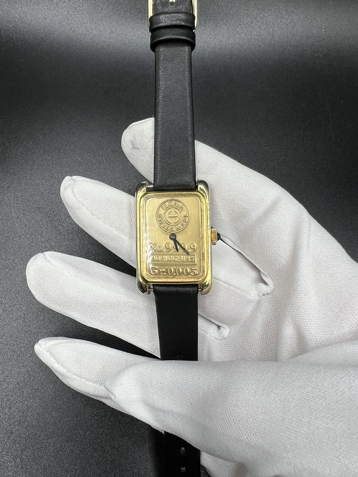 Vintage RARE 24K Gold Plated Ilona Horlogeurs Tank Swiss Made Manual Watch