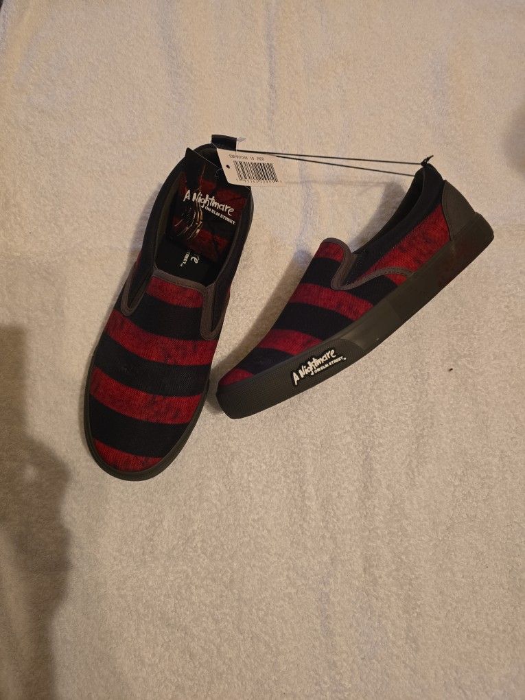 Brand New A nightmare on elm street . Freddy Kruger slip on canvas shoes. I have 2 pairs. Size 8 Size 10 Price is firm. Smoke free home.