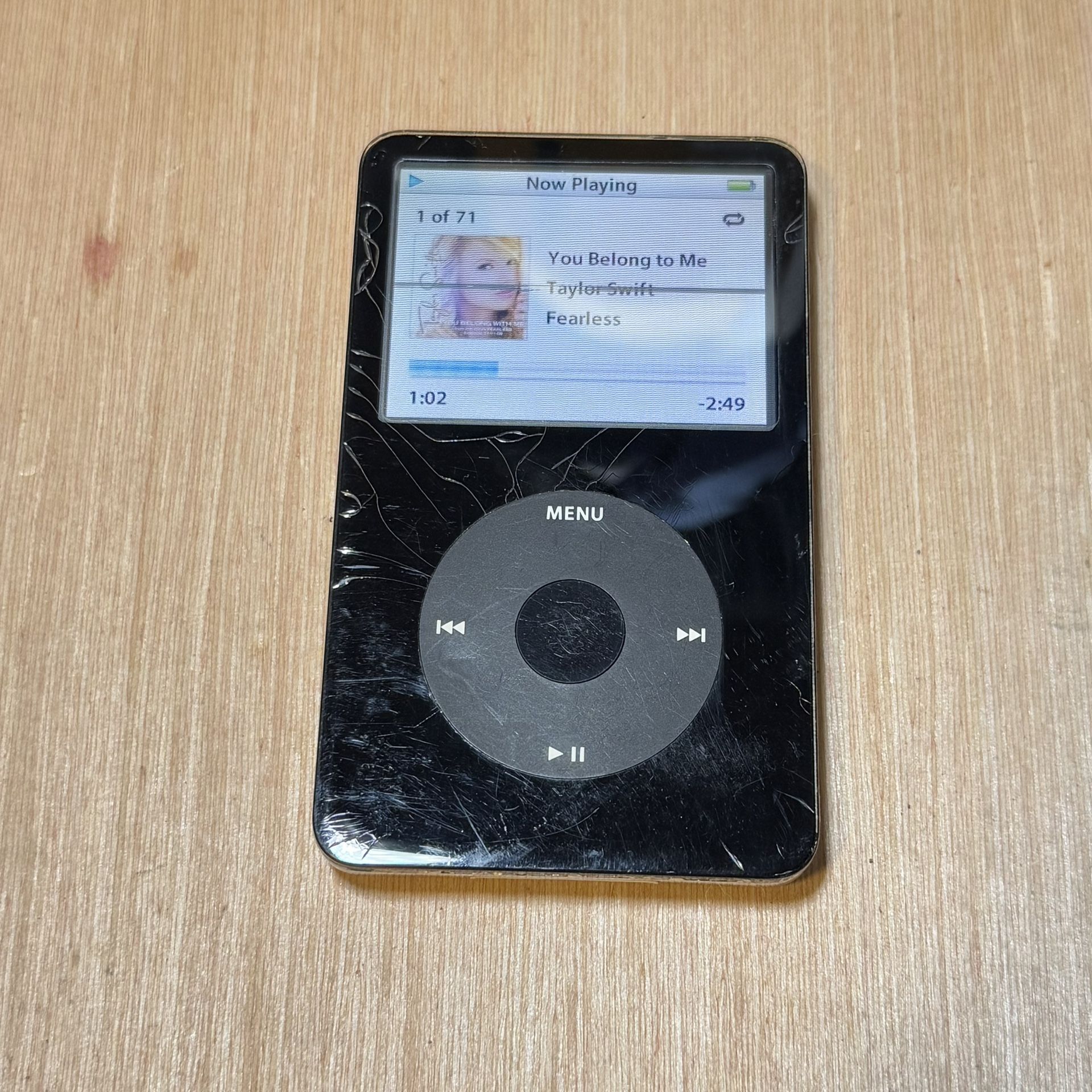iPod Model:A1136 5thGen 30GB Blk Tested Good w/2752 Songs/Charger Read Info Blw! 7-10 overall condition of the iPod the iPod is still in OK condition Front of the iPod where the screen and the buttons are is in nice condition does have some surface scratching on the front and some scratching on screen and wear on corners and edges Has a black bad pixel line in the middle of the iPod does not affect the iPod is still working great Back of the iPod on the silver side has scratches on the back and wear from regular usage iPod has been tested and working All the buttons are working headphone jack works. battery life is holding up good easily. Can play 4 to 6 hours of continuous play. May need to replace battery in the future but for now it’s working good. Ready to use today Will include a aftermarket charger not original may or may not work for downloading and uploading songs, Unsure if it working on Windows does work for charging, Comes with over 2700 songs wide variety of English Spanish music alternative rock ‘n’ roll Corridos alternative pop country Some artist included 71 Taylor Swift songs from her, Other artist include AC/DC, Adele Akon, Banda Machos Beach boys Barry white, the Bee Gees Beyoncé Billy Idol too many to name. Please see photos for condition and size measurements of the iPod Pick up in Anaheim only public place Thank you for your interest to check out my other listings Take care