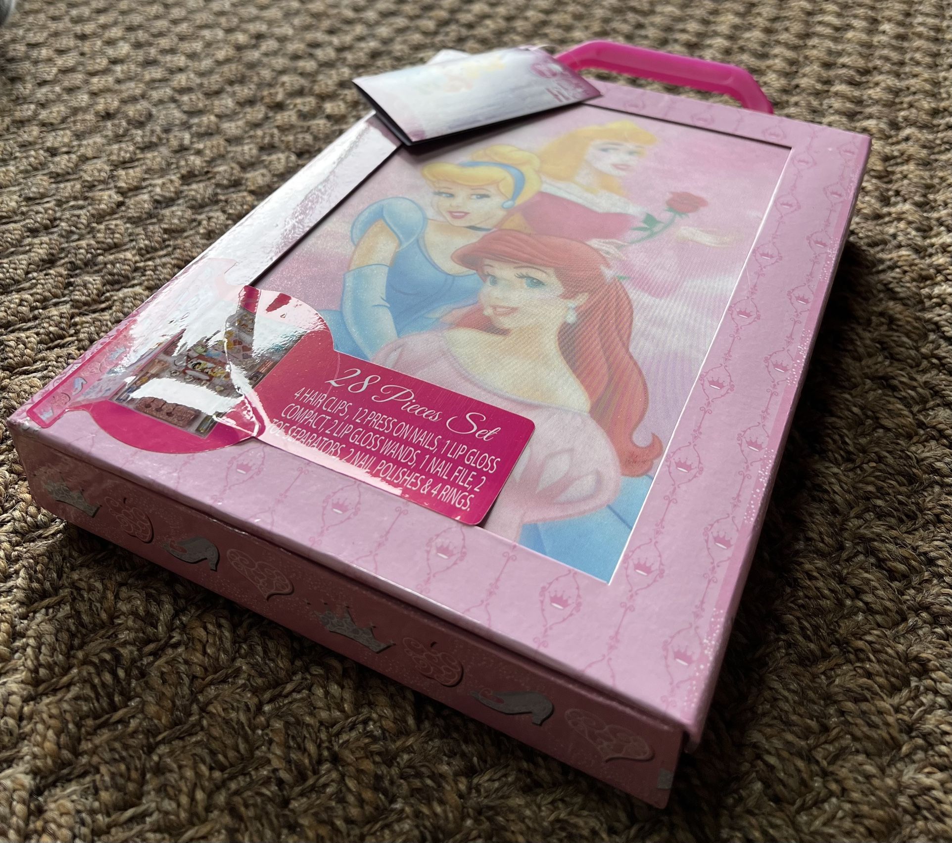 28 Piece Disney Princess Cosmetic Set with Lenticular/3D Printed Cover on reusable box. New, never used - box is still sealed. For ages 6+. Comes with: --4 Hair Clips --12 Press-On Nails --1 Lip Gloss Compact --2 Lip Gloss Wands --1 Nail File --2 Toe Separators/Spacers --2 Nail Polishes --4 Rings Cash only. Will not ship or deliver. Can meet in the Naperville/Aurora area.