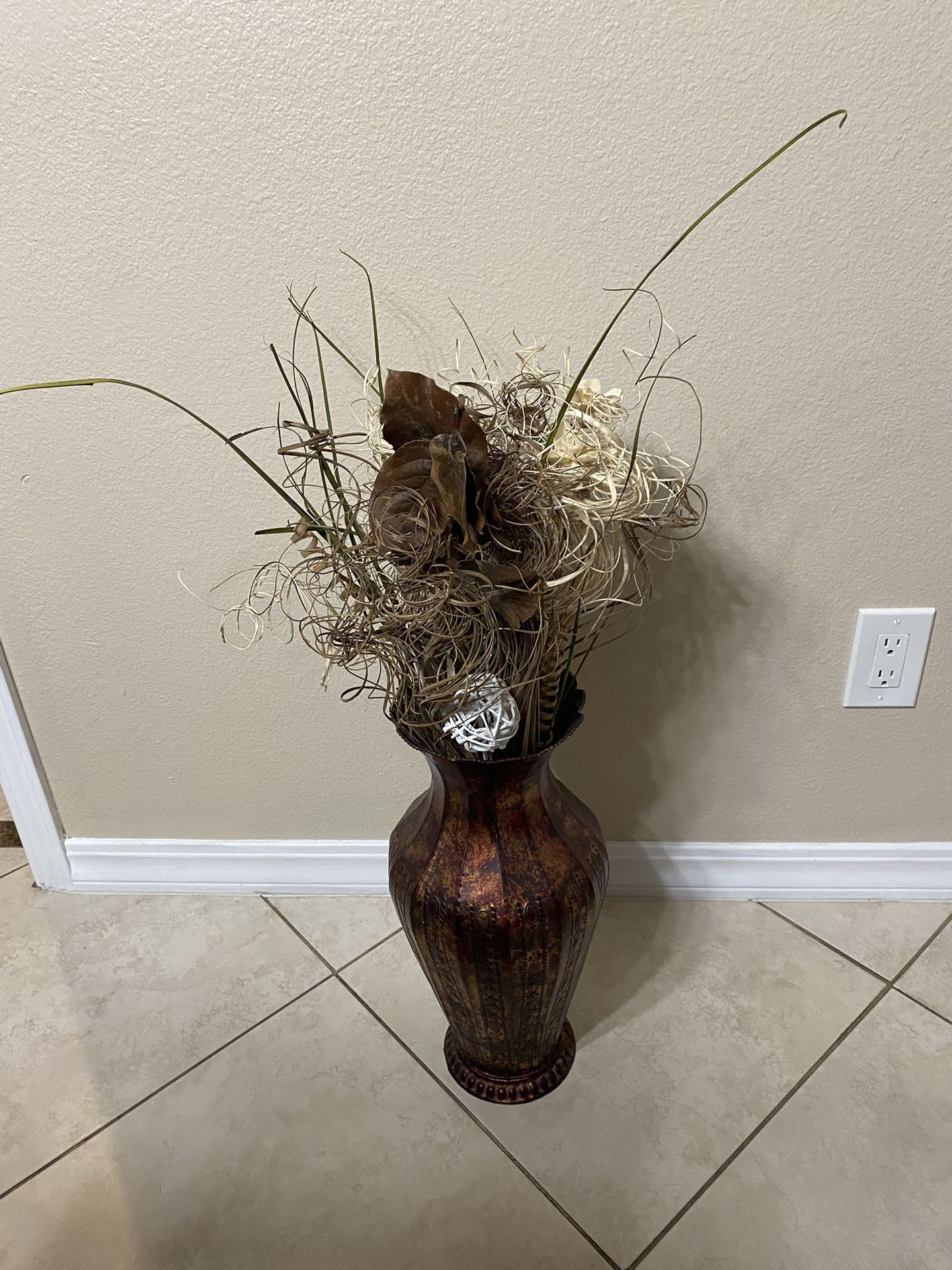Bronze vase comes with flowers