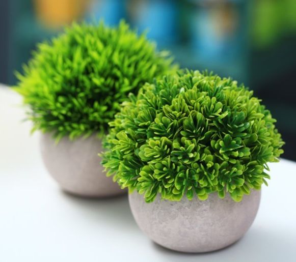 2 Packs Small Artificial Plants in Pot Mini Faked Potted Plants Decorative Faux Plants Centerpiece Topiary Shrubs for Office, Bathroom, Home Decoratio