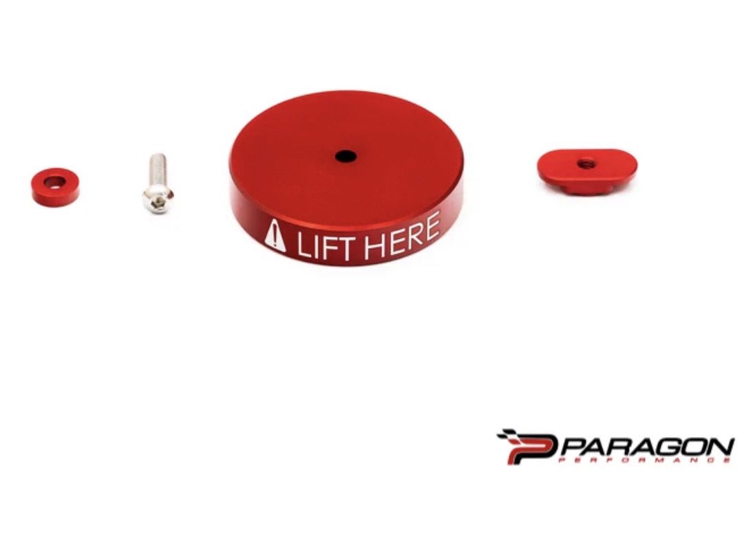 These retail brand new for $135 (set of 4). Fitment for Corvette C8/C7/C6/C5. I ordered this for my Corvette without realizing that the previous owner had already installed some. So, these have never been installed or used. Introducing Paragon Puck, our solution to lifting your Corvette safely. No more worrying about your car falling off the lift at the dealership or slipping off your jack at home. Designed to fit in standard jacks and to work with lifts at dealerships. These highly visible red anodized pads can be permanently or temporarily installed on your car to ensure anyone that ever jacks it up can clearly see the correct places to do so. Use this puck temporarily or install it permanently for your convenience. Blue Loctite recommended if permanently installing. CNC Machined 6061 Aluminum Designed and made in the USA 5/8" in thickness, protrudes the perfect amount for hoists / jacking. Anodized Metallic Red "Lift Here" Laser Engraved Stainless steel hardware included Fits C8, C7, C6 and C5 Corvette