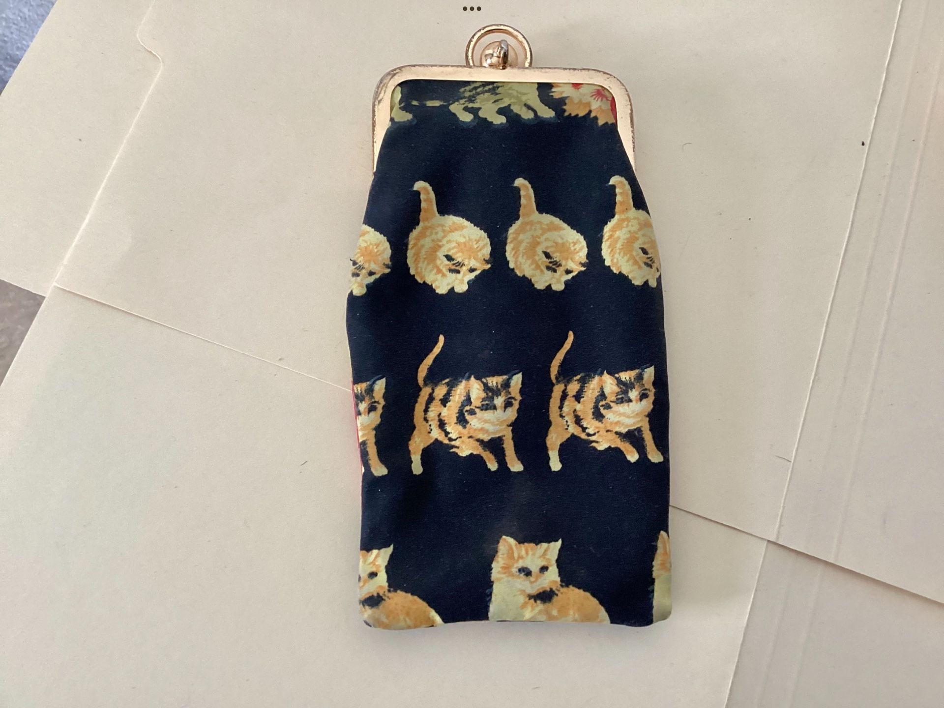 Vtg. Cat Graphics Eyeglass Sunglasses Case / Cosmetics - Money Pouch Snap Closure Cloth Double-Sided