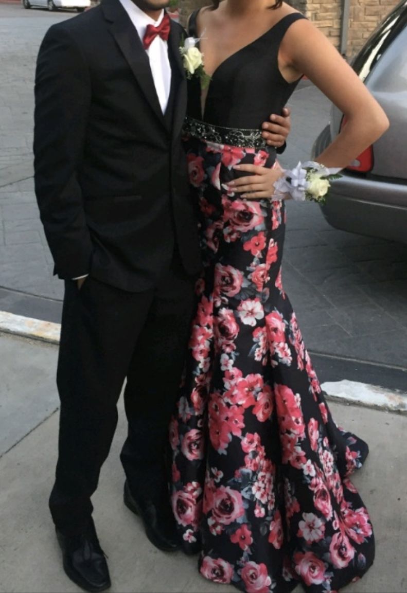 Prom dress for sale Statement dress!!! Very comfortable- used only x1 time for prom. Like new- never had any modifications Mermaid style with minimal train. Corset back. Dress Size 10 (fits around size 6 pants)