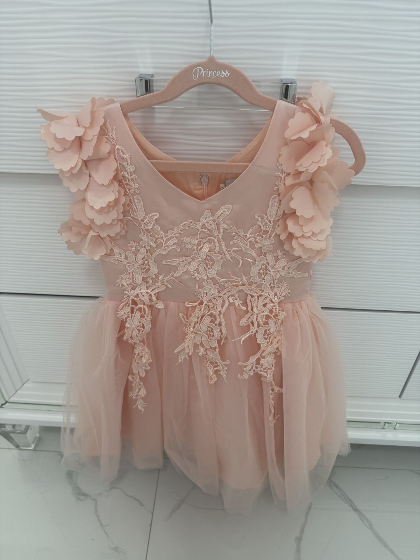 Selling little girls dress perfect for the coming holidays. The color is Peachy Pink. Only used once for a daughters birthday . This one is a size 6. Original price $70 taxes + plus shipping.