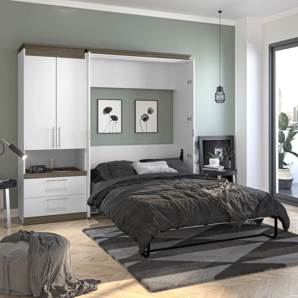 Orion Full Murphy Bed With Storage Cabinet And Nightstand