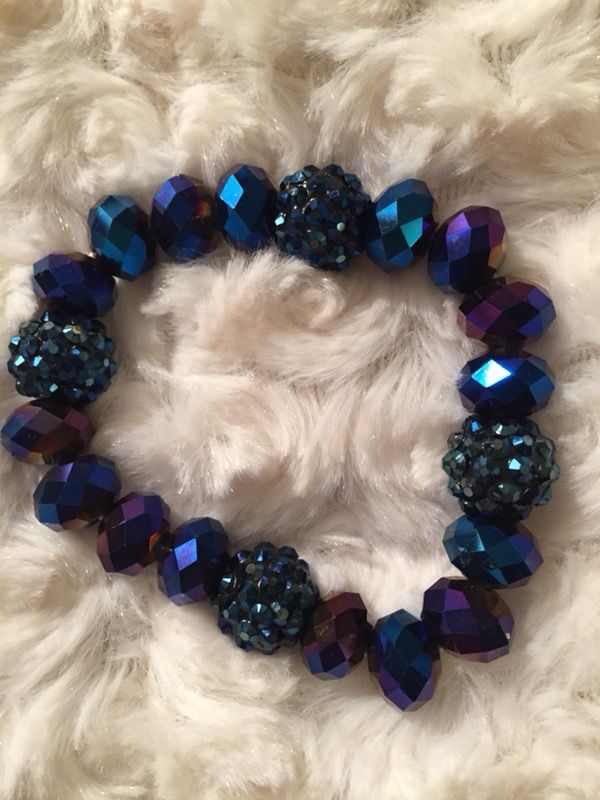 Lovely rich royal blue iridescent glass bead stretch bracelet.