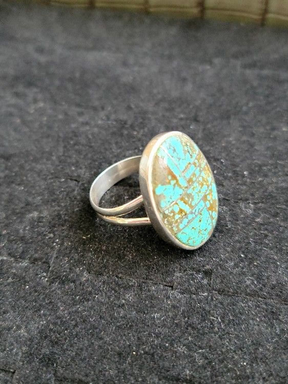 Navajo M Sterling natural Turquoise Ring with silver lines Size Adjustable. Check out my other listings, will do bundle deals! Message if you have any questions or would like more photos