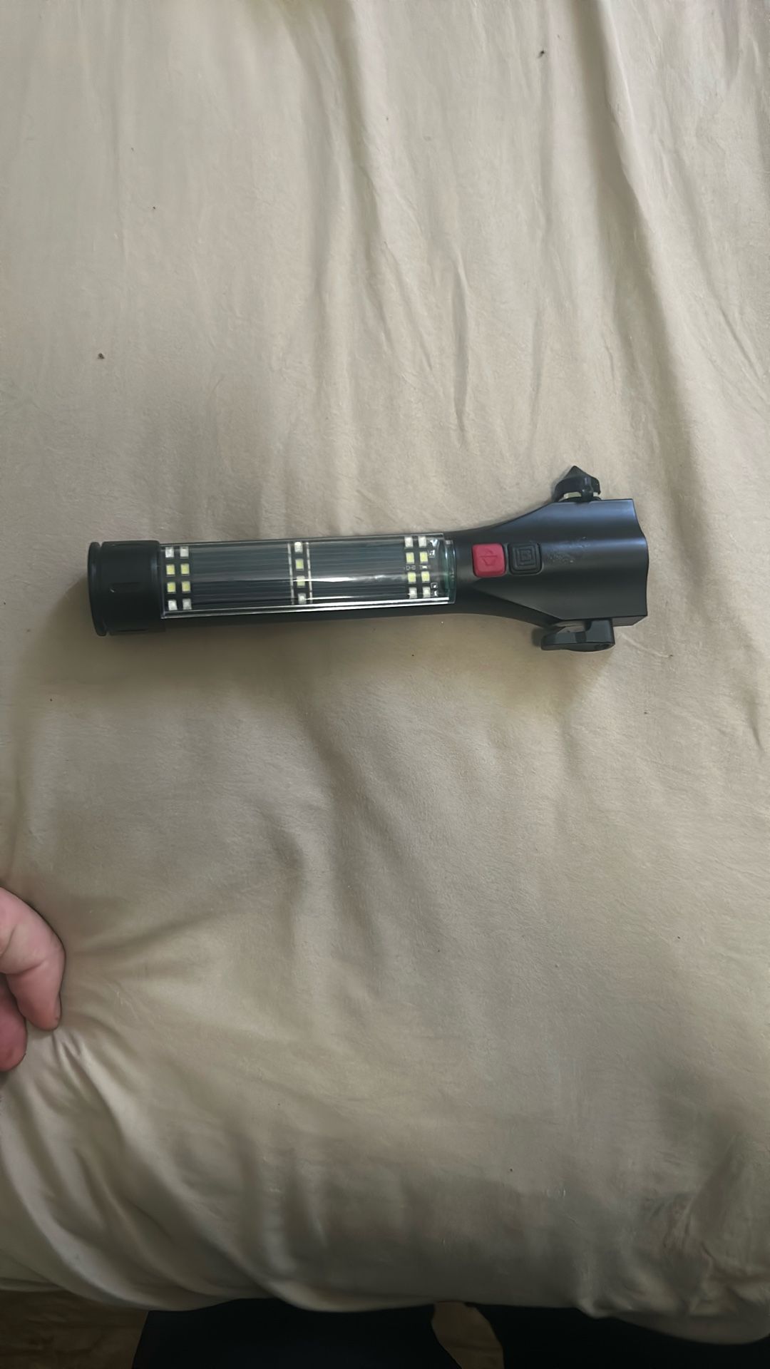It has a seat belt cutter window breaker and emergency power bank built in.