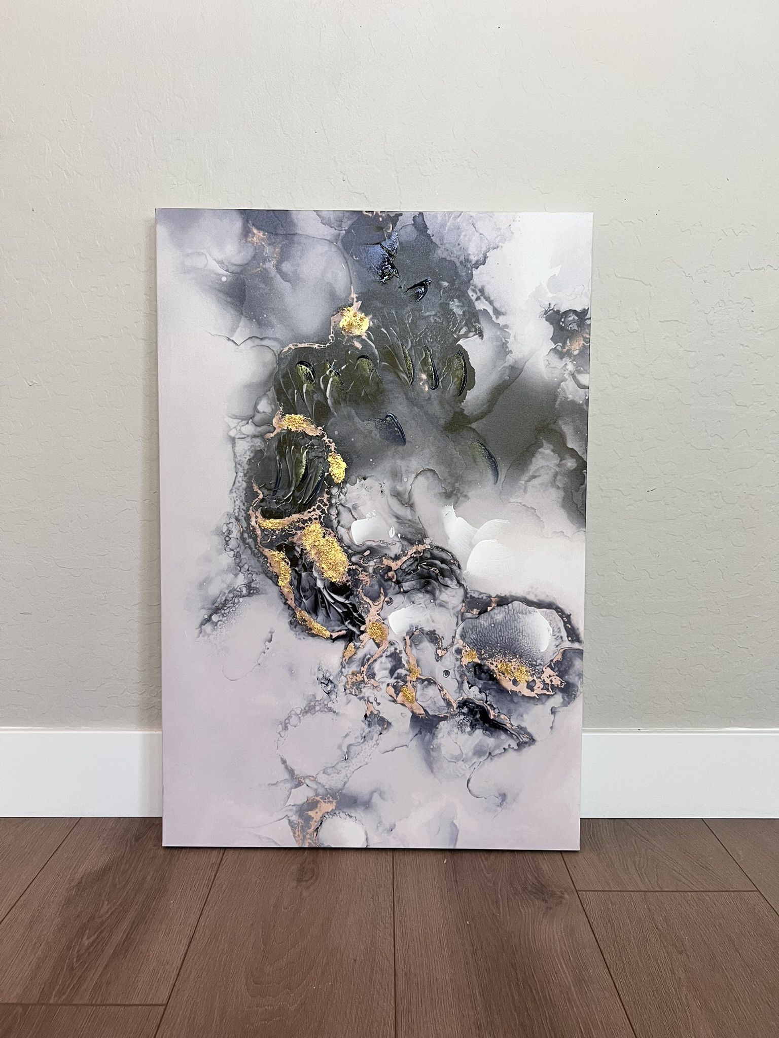 36x24 - 3 feet by 2 feet- Large Black/White/Gold Canvas Art Abstract Artwork. Perfect condition large canvas wall Art, Artwork, wall decor! I have so many wall pictures for sale. Wall Decor Artwork. Framed wall art, artwork, wall decor, wall art, wall picture, framed art. In perfect condition. 24 width, 36 height, 1.5 depth I’m selling multiple household items, furniture and home decor. Check out my other listings! The more you buy, the more you save!!