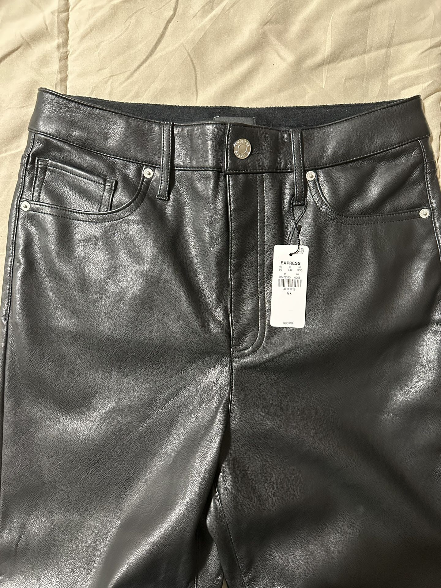 Express black faux leather pants, size 6R. New with tag.